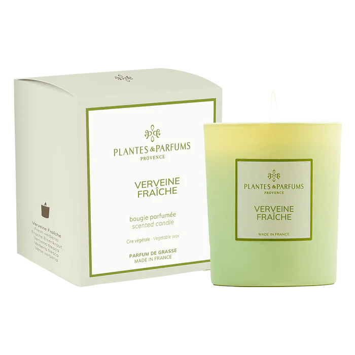 La Bougie Parfumée Verveine Fraîche avec étui délivre un parfum frais et hespéridé. Les notes vertes et vives de la Verveine se mêlent des pointes de Bergamote. C’est comme une petite chanson qui court sur les chemins et réveille une à une toutes les senteurs vives et fraîches du matin. On suit le nez au vent les notes citronnées et mentholées des herbes aromatiques et de la bergamote. Tout le charme de la verveine est là, verte et vive, tendre et affriolante. Bougie parfumée fabriquée en France
