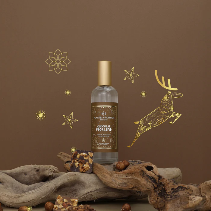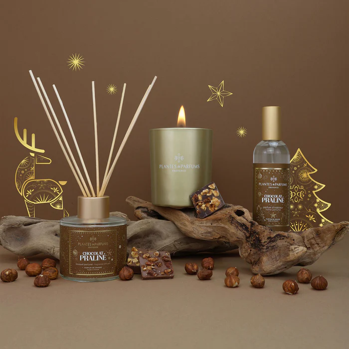 Retrouvez l’esprit des fêtes en un seul geste grâce au Parfum d’Intérieur Chocolat Praliné de chez Plantes & Parfums de Provence. Ses accords chocolatés et pralinés, rehaussés de caramel et adoucis par la vanille, enveloppent instantanément votre maison d’un parfum gourmand et chaleureux.