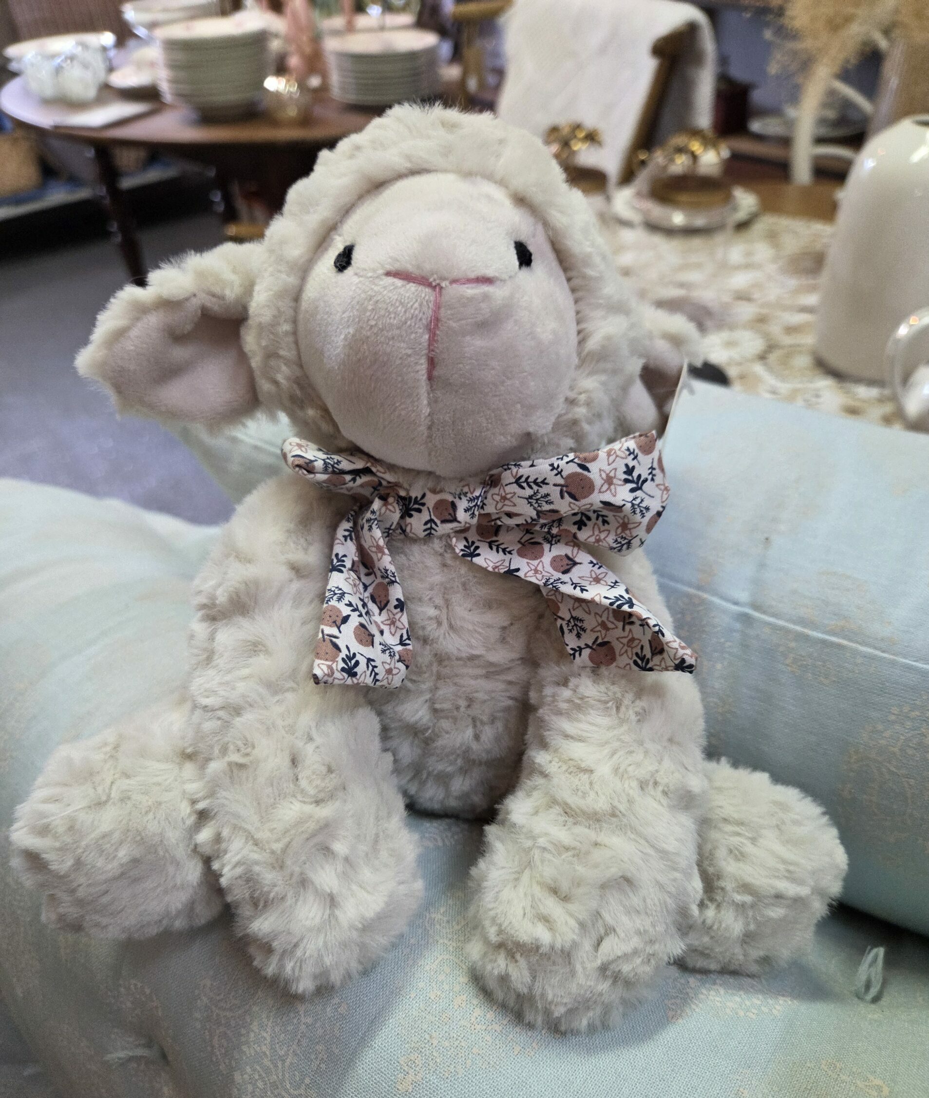 Laissez-vous séduire par cet irrésistible compagnon pour bébé… La peluche Mouton Blanc est toute douce et peut accompagner votre tout-petit dès sa naissance. Habillée de son élégant nœud, elle apportera une touche de douceur et de délicatesse à la décoration de la chambre.