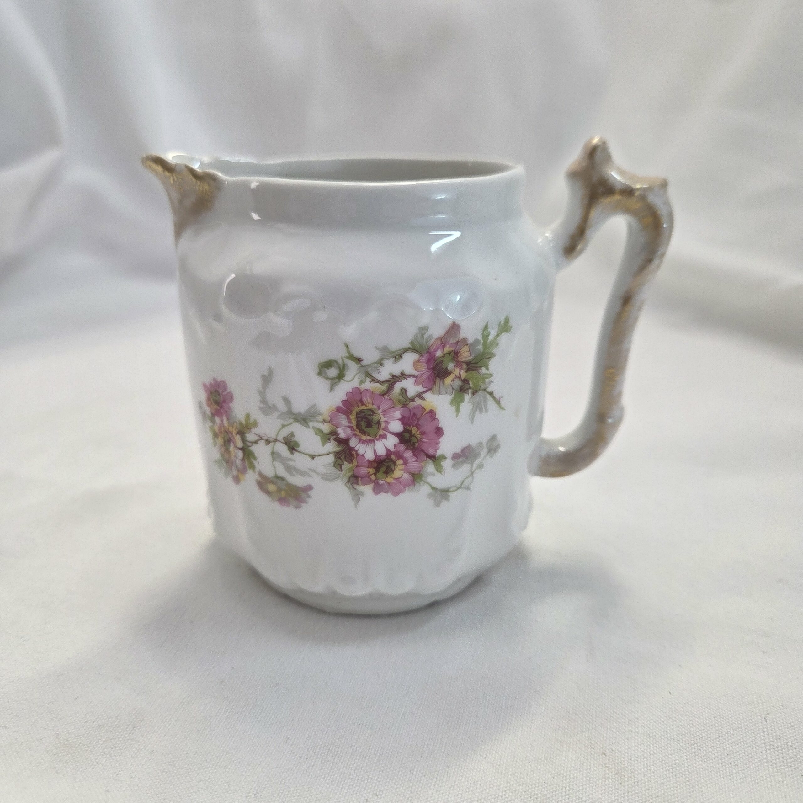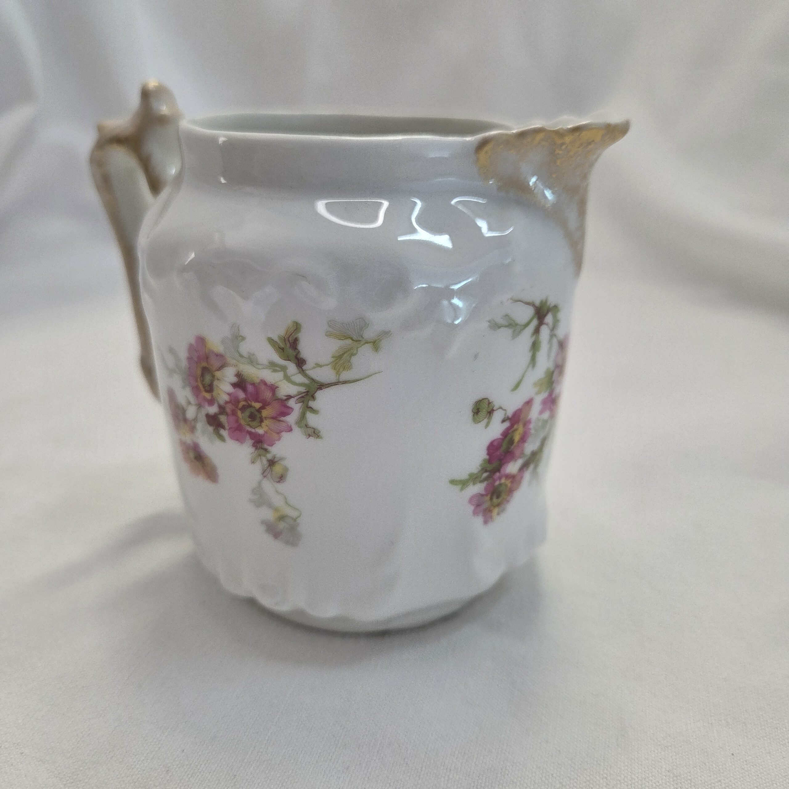 Pot à lait ancien en porcelaine fleurie de Limoges